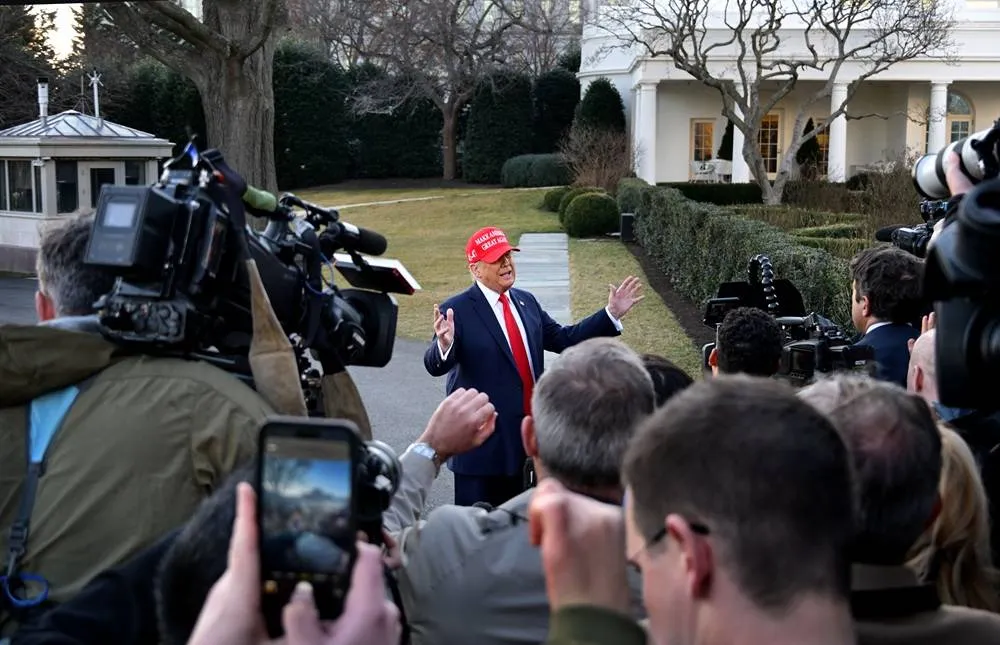 01 March 2025, US, Washington: US President Donald Trump addresses the media as he departs the White House for Mar-a-Lago, a resort and National Historic Landmark on a barrier island in Palm Beach. (dpa)