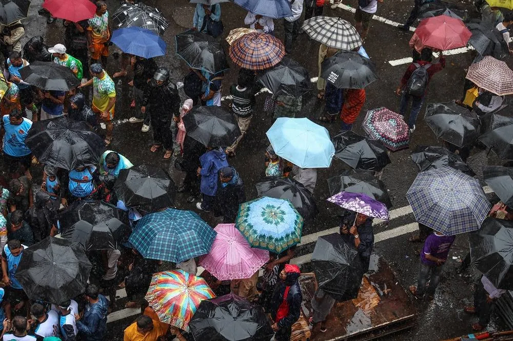 People use umbrellas during heavy rain in Mumbai, India, 16 August 2025. (EPA)
