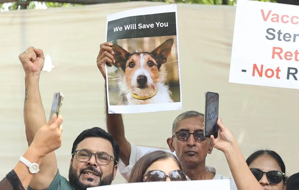 People protest in solidarity with stray dogs in New Delhi, India, 21 August 2025. (EPA)