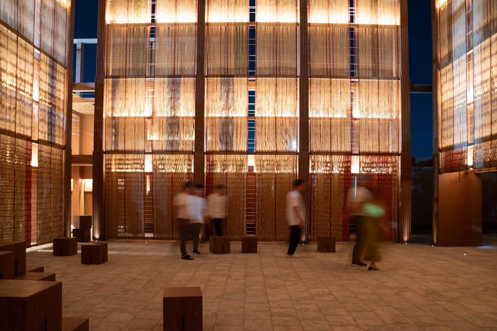 In the inaugural edition of the Bukhara Biennial, Saudi Arabia is represented through its artists and culture. A dramatic example is the winner of the AlMusalla Prize, which was first unveiled at the Jeddah Islamic Art Biennale earlier this year. Called "On Weaving", it was created by a team comprising Studio East Architecture, the international engineering firm AKT II, and artist Rayyane Tabet.
