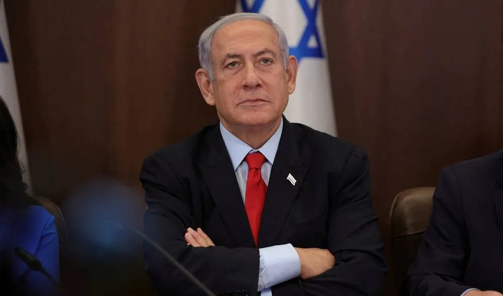 Israeli Prime Minister Benjamin Netanyahu attends the weekly cabinet meeting in the prime minister's office in Jerusalem, 30 July 2023. (Reuters)