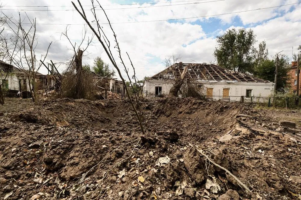 A shell crater in the frontline town of Orikhiv, Zaporizhzhia Oblast, Ukraine, 07 September 2023, amid the Russian invasion. (EPA)