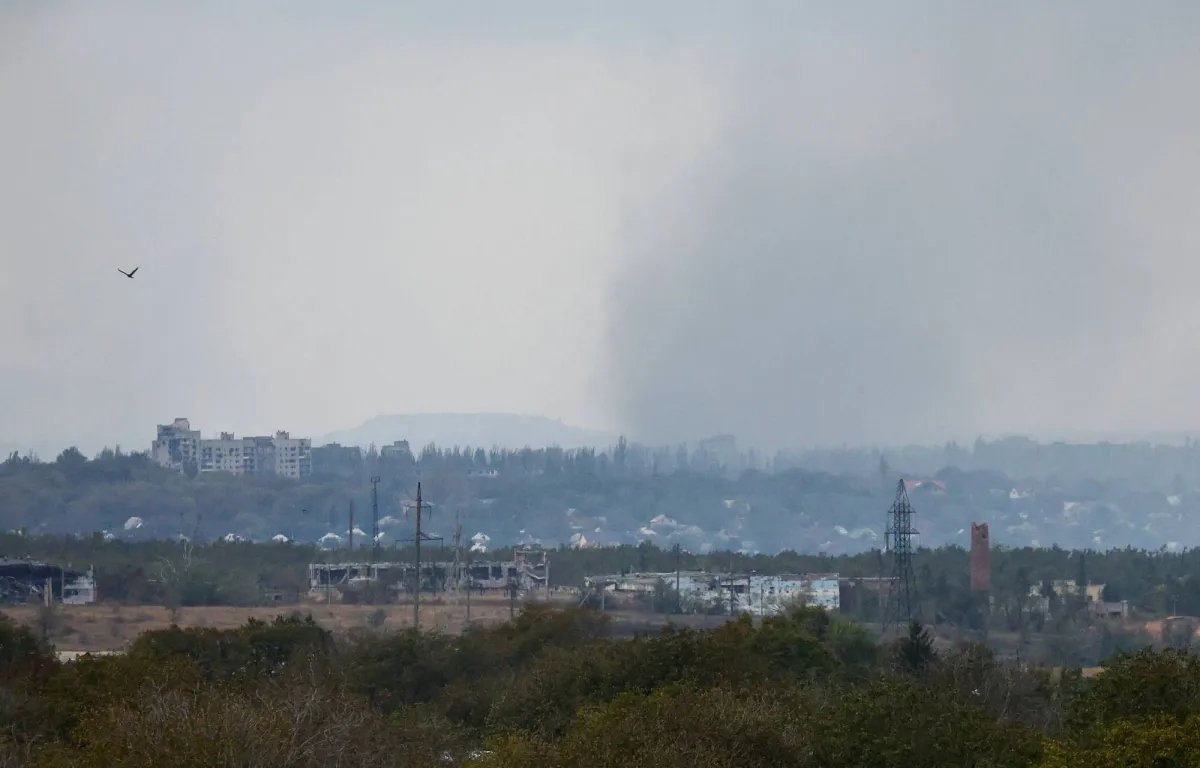 Smoke rises above the area of Avdiivka town in the course of Russia-Ukraine conflict, as seen from Yasynuvata (Yasinovataya) in the Donetsk region, Russian-controlled Ukraine, October 13, 2023. REUTERS/Alexander Ermochenko