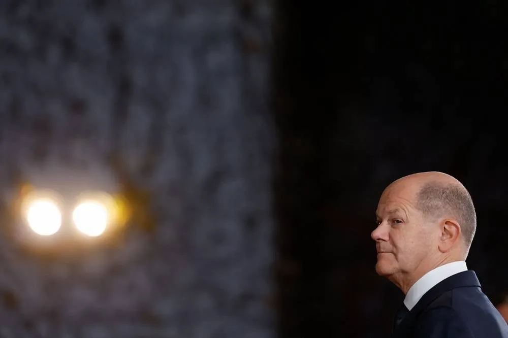 German Chancellor Olaf Scholz waits for the arrival of the Turkish President at the Chancellery in Berlin on November 17, 2023. (AFP)