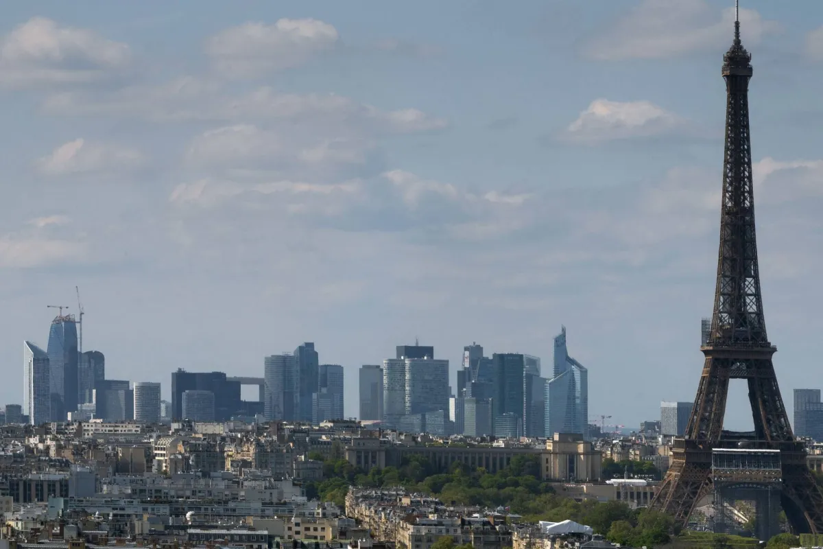 (FILES) This photograph taken in Paris on April 22, 2022 shows the Eiffel Tower with La Defense business district in the background. (Photo by JOEL SAGET / AFP)