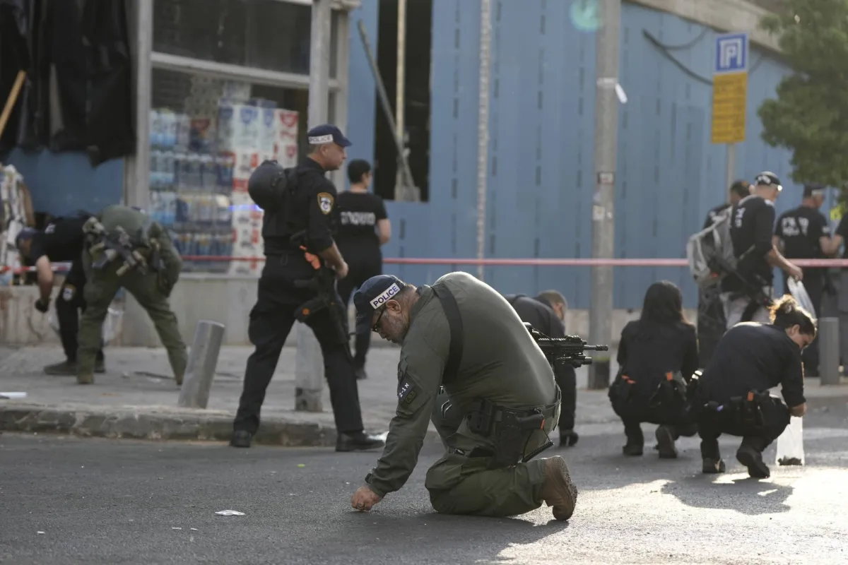 Israeli police investigate the scene of a deadly explosion in Tel Aviv, Israel, Friday, July 19, 2024. (AP Photo/Oded Balilty)