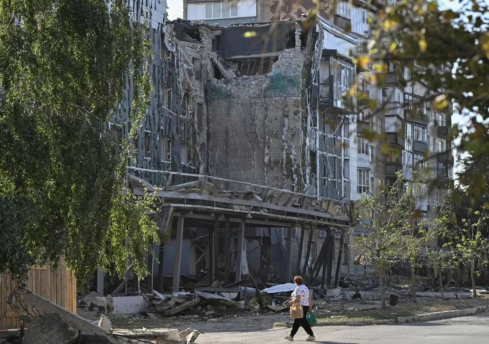 A local resident walks past a heavily damaged building in the town of Pokrovsk, Donetsk region, on September 20, 2024, amid the Russian invasion of Ukraine. (AFP)
