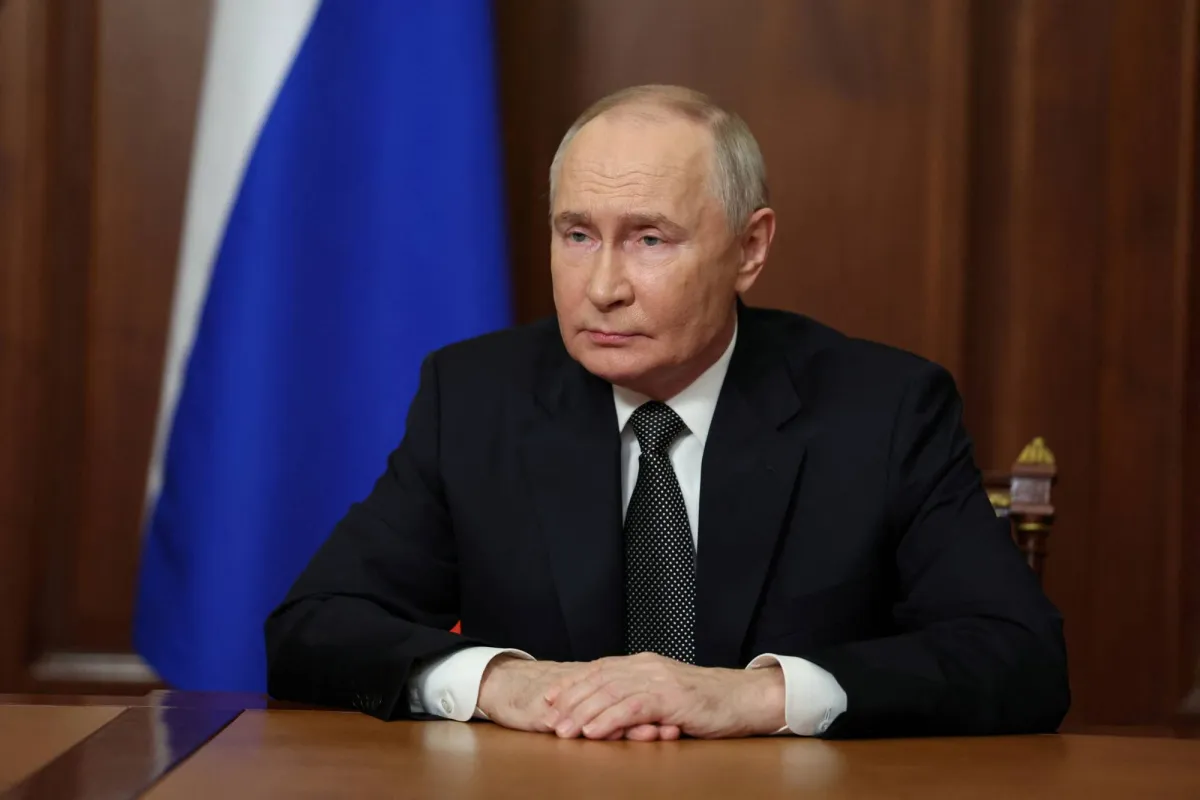 Russian President Vladimir Putin makes a televised address, dedicated to a military conflict in Ukraine and in particular to Russia's launch of a hypersonic intermediate-range ballistic missile attack on a military facility in response to recent Ukrainian long-range strikes with Western weapons, in Moscow, Russia November 21, 2024. Sputnik/Vyacheslav Prokofyev/Pool via REUTERS