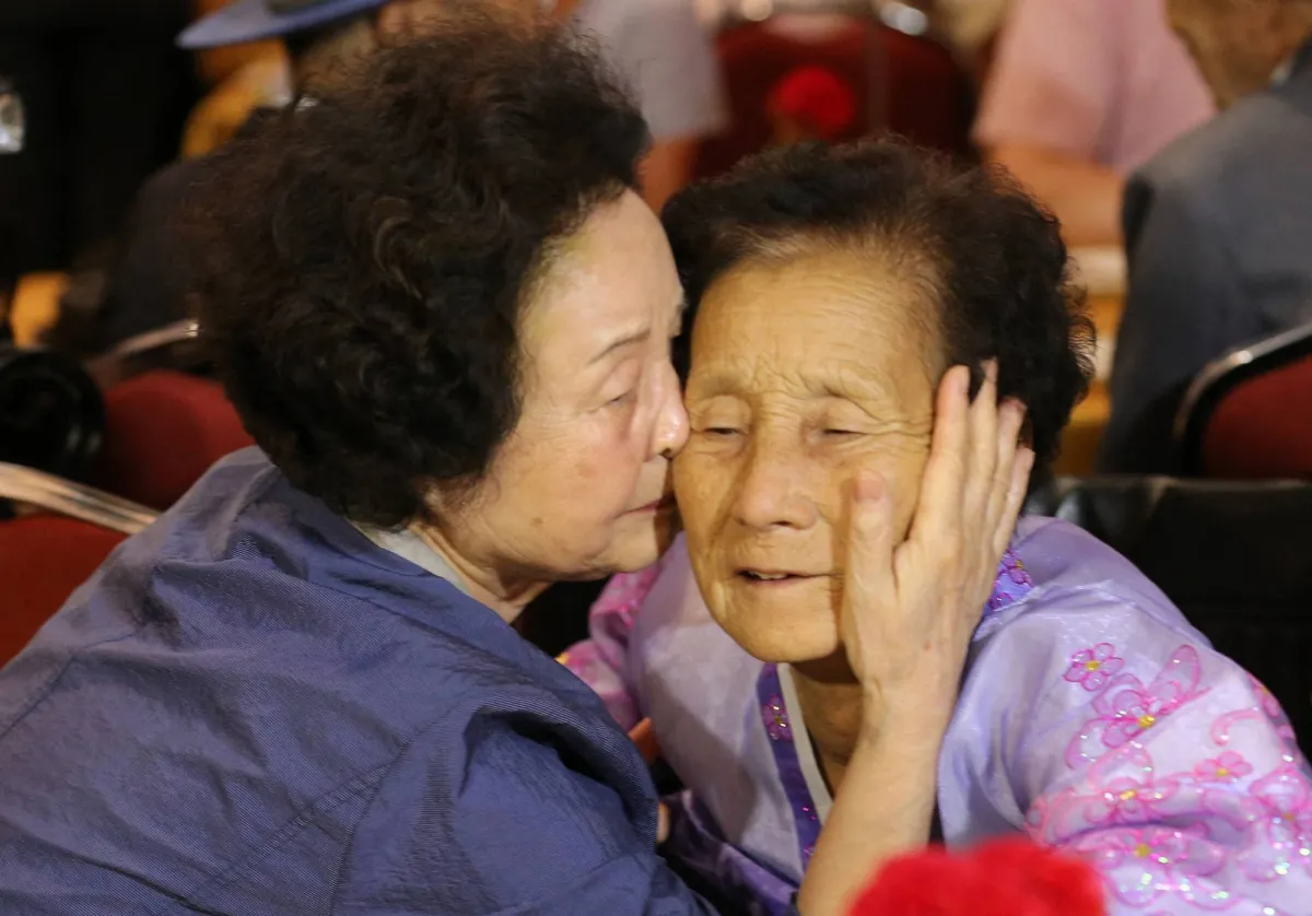 (FILES) In this file photo taken on August 26, 2018, North Korean Pak Young Hee (R), 85, cries with her South Korean sister Park Yoo-hee (L), 83, as they bid farewell at the last meeting of a three-day family reunion event at North Korea's Mount Kumgang resort. (Photo by KOREA POOL / KOREA POOL / AFP)