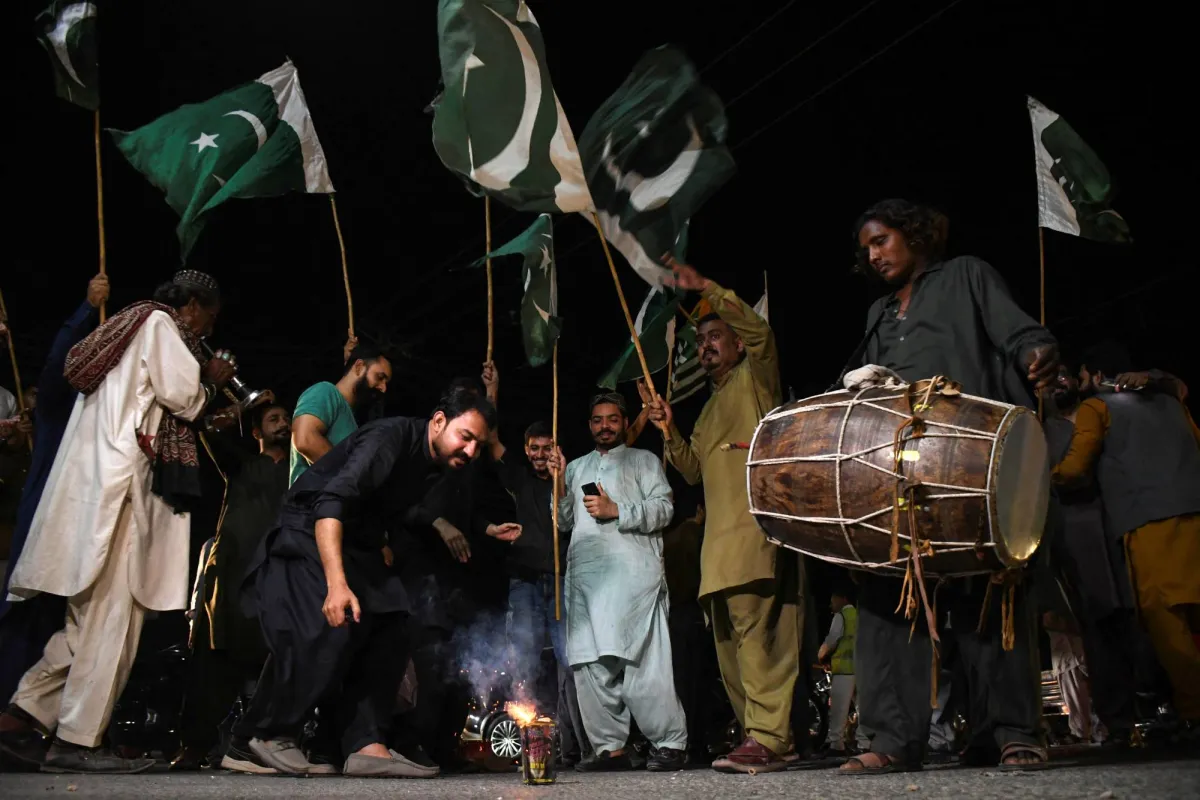 People celebrate after the ceasefire announcement between India and Pakistan, in Hyderabad, Pakistan, May 10, 2025. REUTERS/Yasir Rajput