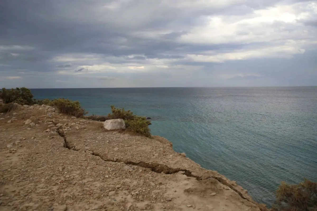 A crack is seen on the seaside following an earthquake in the village of Xerokampos on the island of Crete, Greece, October 12, 2021. (Reuters)