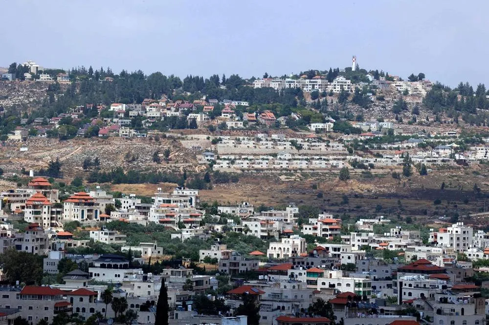 This picture shows the Palestinian village of Turmus Ayya, north of Ramallah in the occupied West Bank (foreground) and the Israeli settlement of Shilo (background) on June 1, 2025. (AFP)