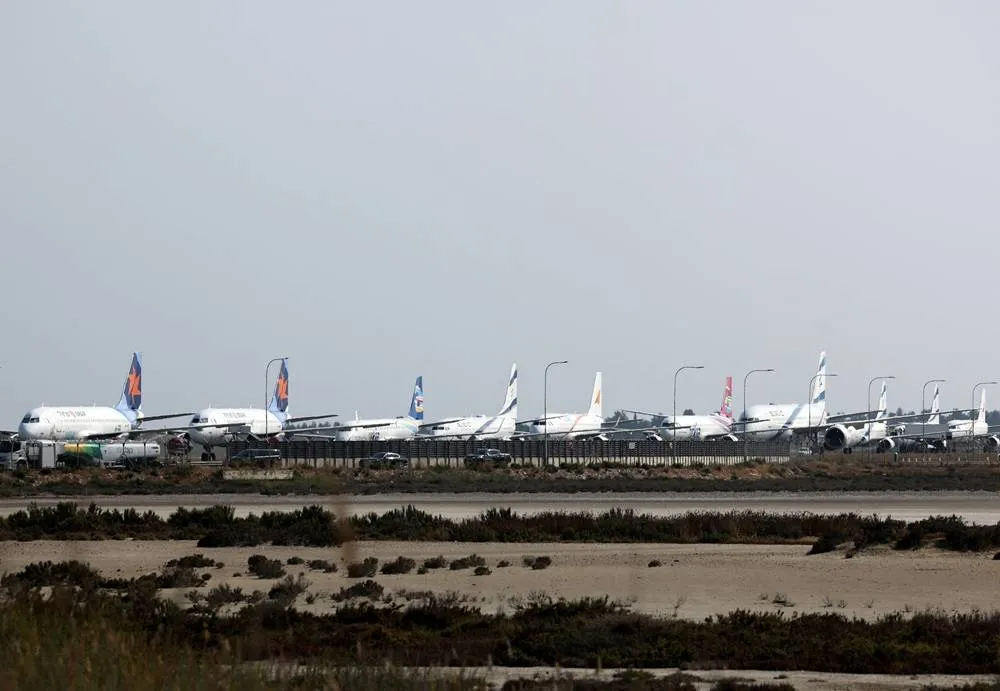 Aircraft belonging to Israel's state carrier El Al and Israir among other airlines, are parked at Larnaca International Airport, in Larnaca, Cyprus June 16, 2025. (Reuters)