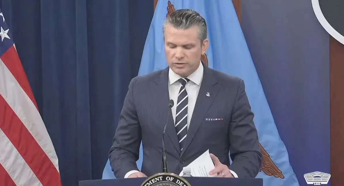 US Secretary of Defense Pete Hegseth holds a briefing at the Pentagon, after the US struck Iranian nuclear facilities, during the Israel-Iran conflict, in Arlington, Virginia, US, June 22, 2025 in this still image taken from handout video. Reuters TV/US Department of Defense/Handout via REUTERS
