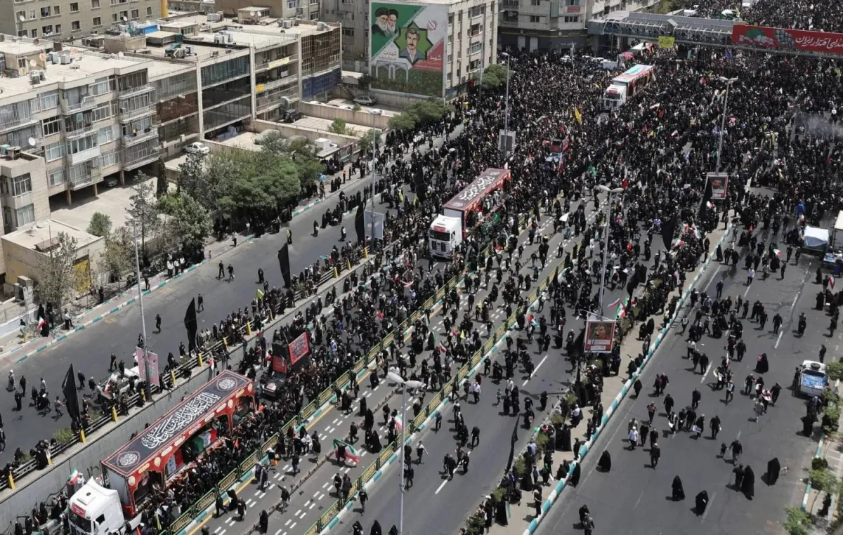 People attend the funeral procession of Iranian military commanders, nuclear scientists and others killed in Israeli strikes, in Tehran (Reuters)