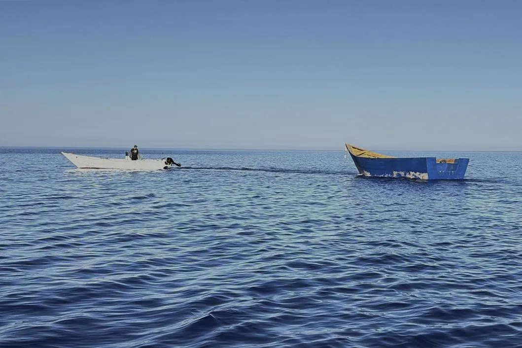 Representation photo: A boat used by migrants to cross the Mediterranean Sea is towed from Tripiti beach to the Karave the port of Gavdos, Greece, on Monday, July 7, 2025 after hundreds were rescued near the island and the island of Crete in separate incidents. (AP Photo/Elena Becatoros)