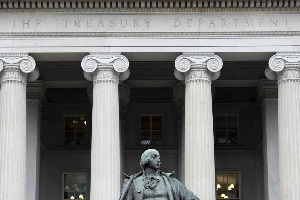 The Treasury Department building is seen, March 13, 2025, in Washington. (AP)
